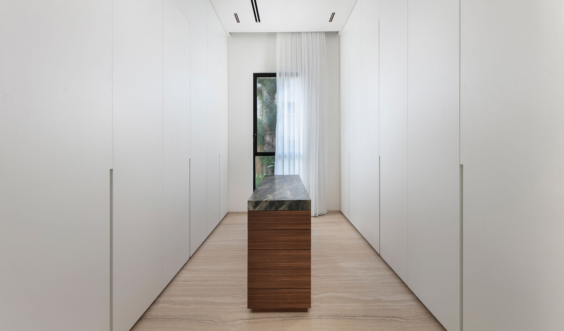 יוצרת מעבר פנימי ארוך המוביל לחלל ציבורי פתוח ומרווח המשקיף לבריכת שחיה ונוף חקלאי פתוח .