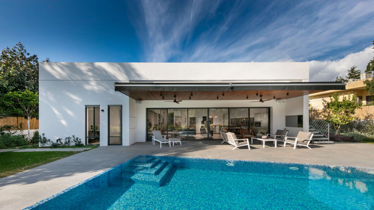 בשכונה פסטורלית בקיסריה כ 300 מטר מקו חוף הים תוכנן בית מגורים בן קומה אחת בגודל 450 מ"ר , בני הזוג הגיעו למקום בכדי להיות קרובים לילדיהם אשר גרים בסביבה . הבית תוכנן עם מרחב ציבורי רחב ידיים משקיף לבריכת שחיה וגן חיצוני פרטי מטבח חיצוני ועוד ונועד להכיל את בני המשפחה המורחבת אשר מגיעים לבקר ושהות בבית מפעם לפעם. הבית כניסה ומרחב הפאטיו מפריד בין האיזור הציבורי שלך הבית ובית המרחב הפרטי של ההורים.